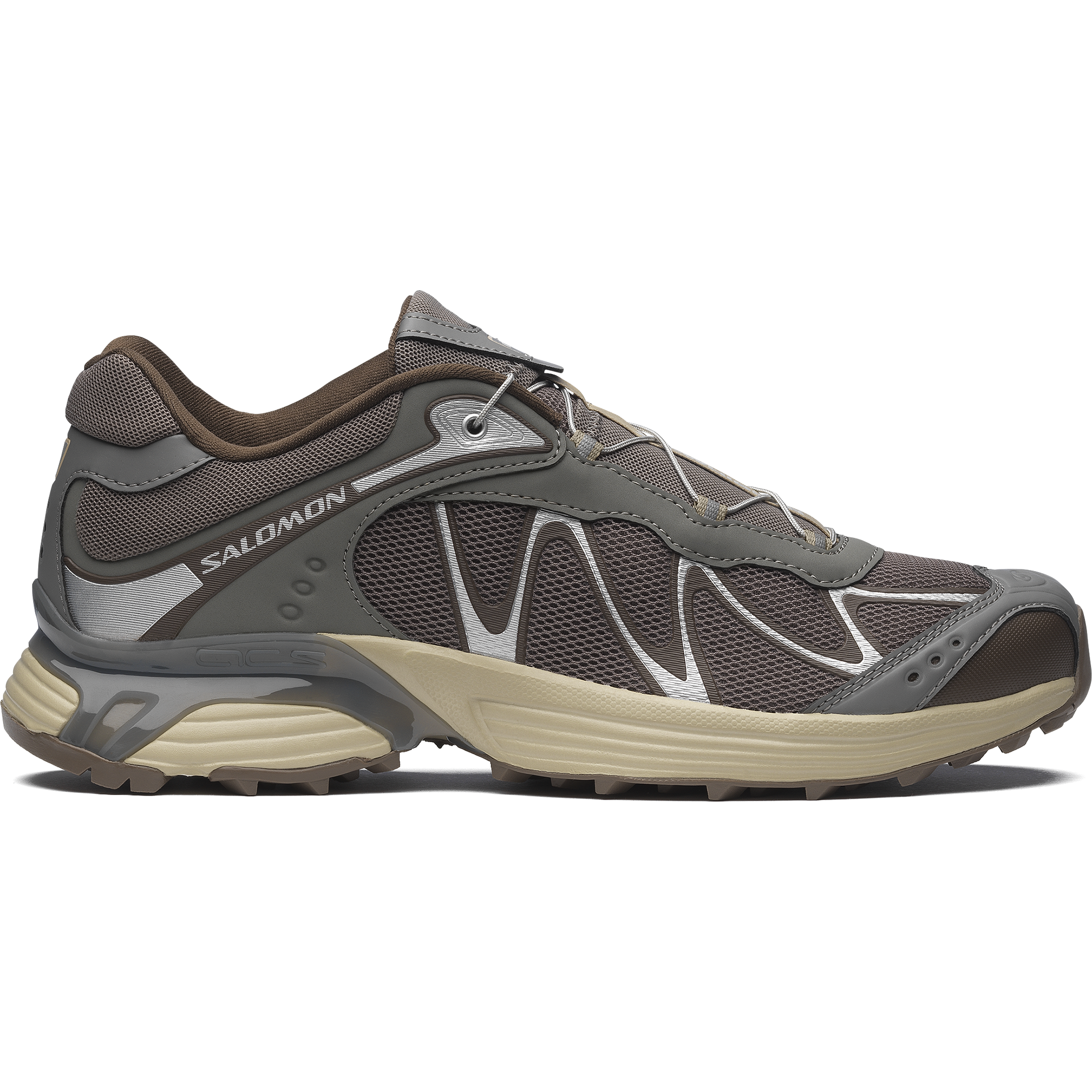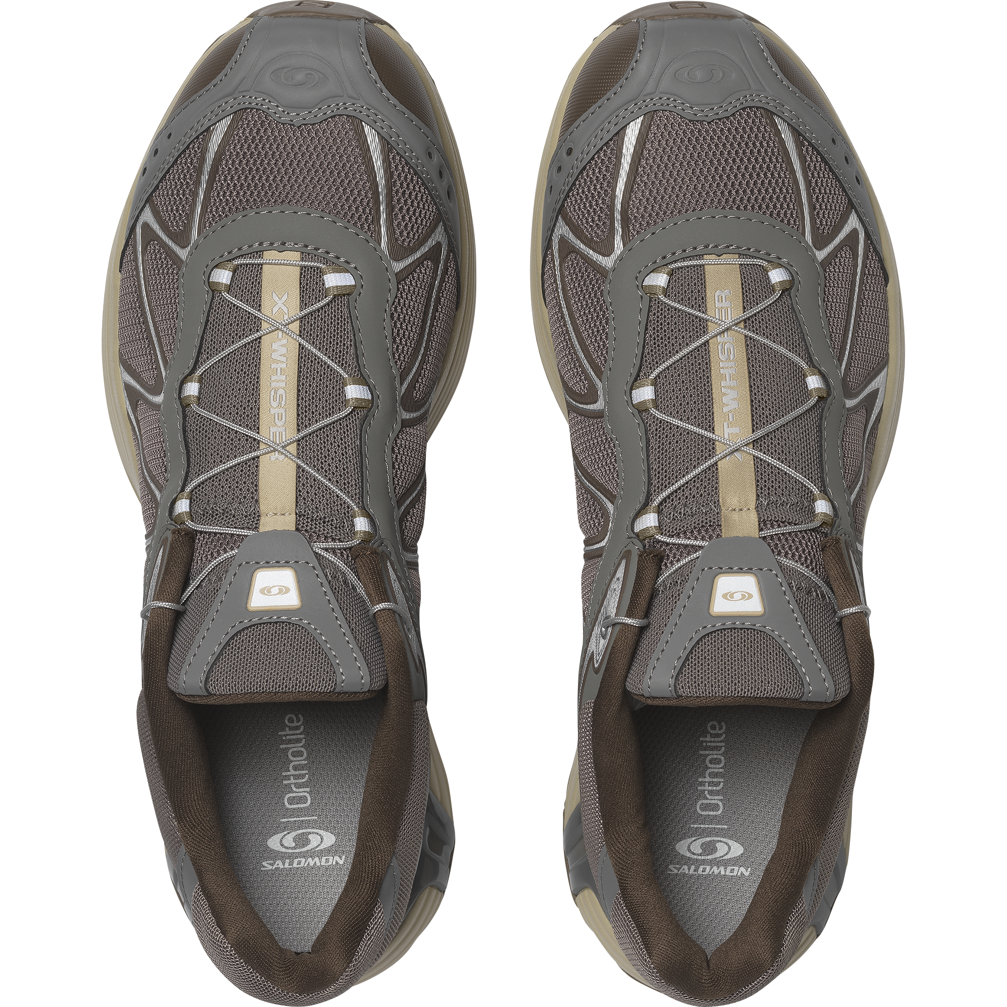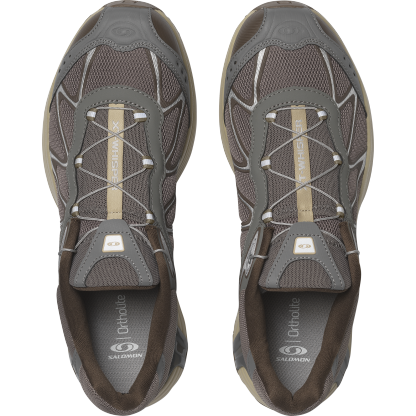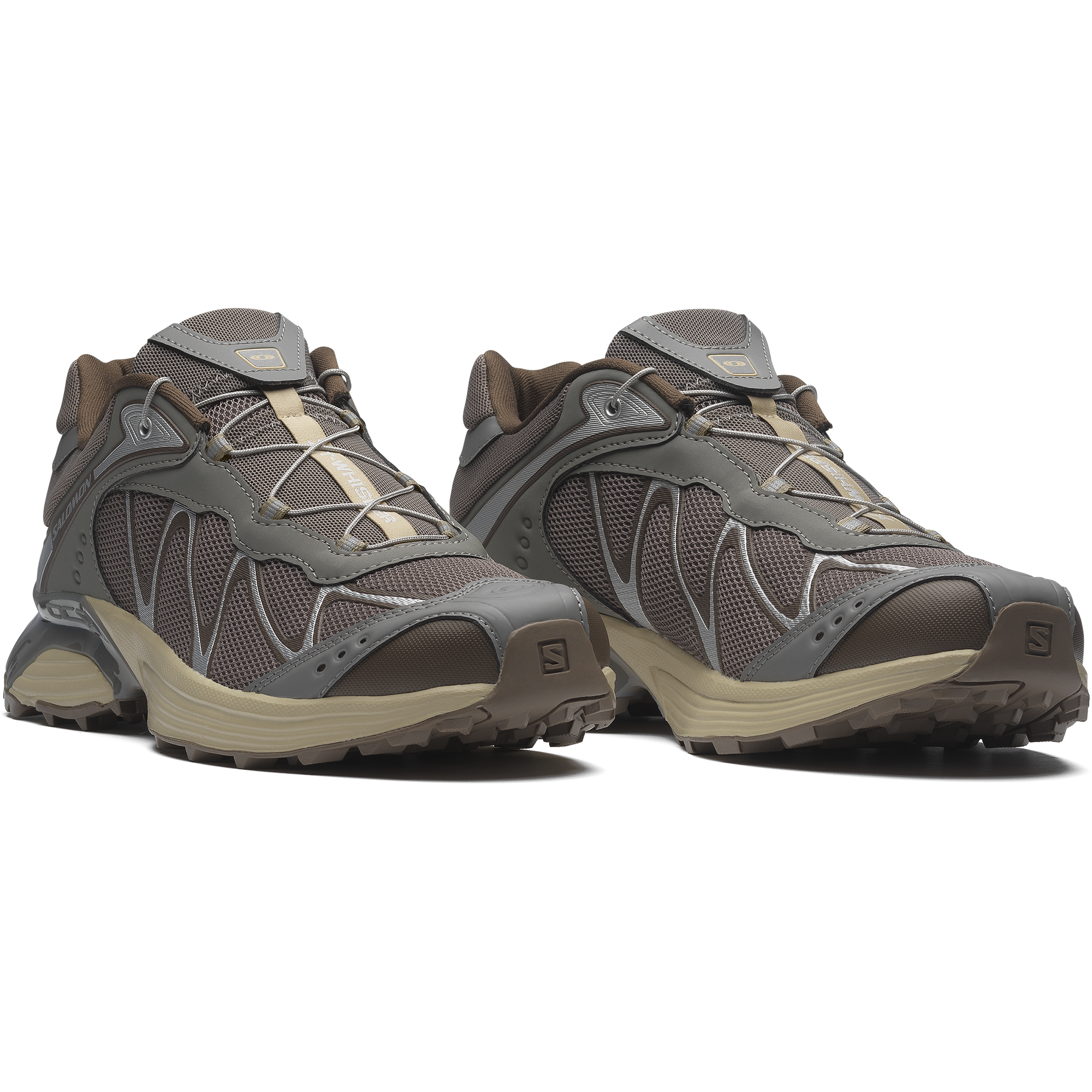 Salomon の DNA と XT のデザイン系譜を受け継ぐ XT-Whisper は、独特の質感や、レイヤー構造の高級感のある仕上げを特徴としています。コントラストのあるディテールが際立ち、リッチな素材を用いたアッパーがモダンな印象を与えます。また、独自の波状の SensiFit™ と Quicklace™ を組み合わせることで、フィット感のある信頼できるホールド感を実現しています。